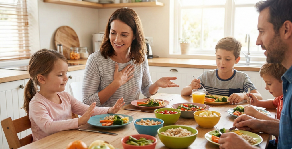 Por exemplo, se vamos comer, devemos experimentar o alimento e perceber o que este alimento está me dizendo, o meu corpo está dizendo: “me agrada” ou “me desagrada”? E isso também diz respeito à quantidade e ao tipo de alimento que a criança consome.